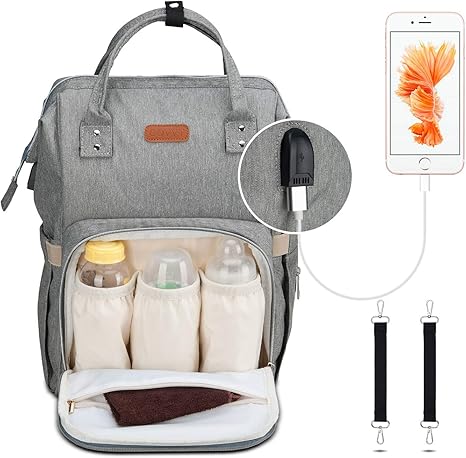 Amazon Com Mochila Para Panales Con Puerto De Carga Usb Y Correas Para Cochecito Bolsa Para Panales De Maternidad Con Bolsillo Aislado Para Biberon Mochila Unisex Multifuncion Para Panales L Gris Baby